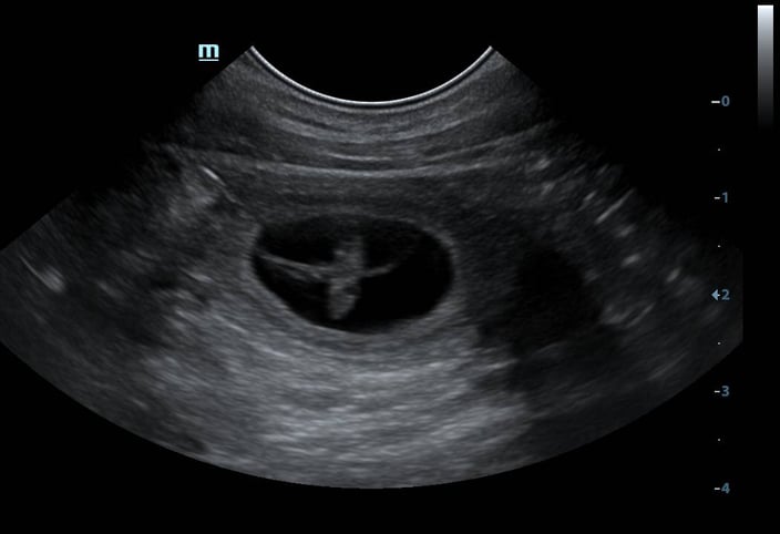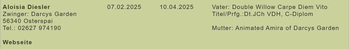 Die Verpaarung mit Vito war erfolgreich. Die Ultraschalluntersuchung (03.03.2025) lässt mehrere aktive Anlagen erkennen. Amira ist tragend.